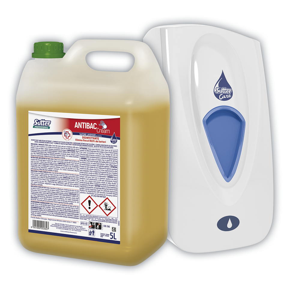 ANTIBAC CREAM disinfectant is an anti-bac hand soap by SUTTER is to be used to disinfect hands and skin on all occasions when thorough hygiene is required. Disinfectant handwash cream, also suitable for the hospital area and food sector (HACCP) which give you gentle on hand skin. To use with liquid refill dispenser.