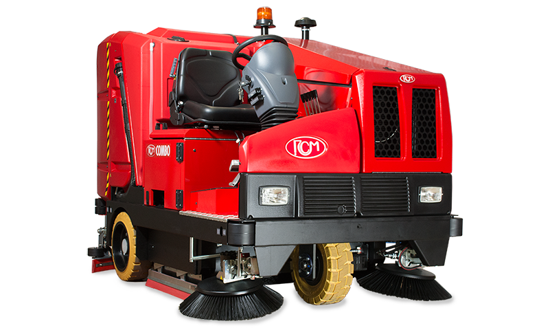 The last generation of combined machine Combo has been conceived basing on the RCM construction philosophy; the same philosophy followed in the last 50 years to produce ride on sweepers with front driving position, logic driving system, front steering drive wheel to ensure the maximum visibility, manouverability and safety for the operator.